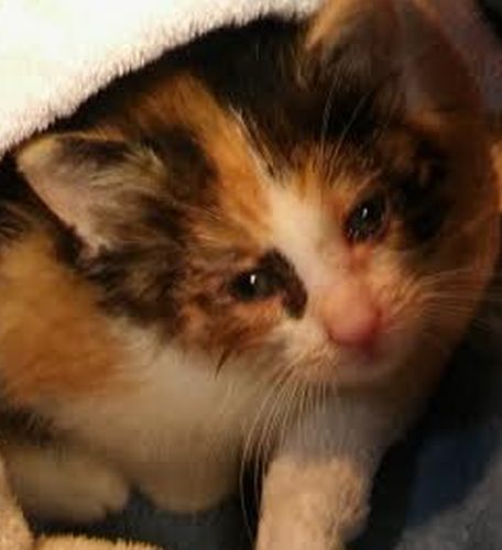 Trudno powiedzieć skąd się wzięła, dlaczego akurat w tym miejscu i gdzie jest jej kocia mama. Po prostu pojawiła się na podjeździe garażu. Sama, płacząca, mokra od deszczu. Została zabrana stamtąd przez ludzi, którzy mieszkali w okolicy i trafiła do przychodni weterynaryjnej. Przede wszystkim była bardzo głodna, niestety, przez kilka dni karmiono ją nietrawionym przez koty mlekiem krowim. Koteczka rzuciła się więc na jedzenie, pomimo że dopiero zaczynała uczyć się jeść. Musiała być dokarmiana mlekiem modyfikowanydla kociąt z butelki. Bubu miała ropny wypływ z nosa, łzawiące oczy i cały czas kichała. Tak maleńkie kociątko bardzo łatwo może pokonać taka choroba- zwykły koci katar stanowi śmiertelne niebezpieczeństwo.