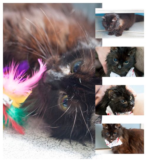 Huncwot to kot, który żyje tylko dzięki wrażliwość i empatii ludzi, którzy go znaleźli. Bezbronne ciałko kocurka leżało na krawężniku, przewieszone jak szmaciana lalka. Z nosa płynęła krew, kot nie mógł normalnie oddychać przez to, krztusił się, był we wstrząsie. Został natychmiast przewieziony do przychodni, gdzie udzielono mu pierwszej pomocy. Nie wyglądało to dobrze....pęknięta żuchwy, pęknięte podniebienie. Zdecydowano o przewiezieniu go do całodobowej przychodni. Tam założono mu sondę, aby można go było karmić. W kolejnych dniach chirurgicznie zespolono podniebienie, stomatolog nie miał łatwego zadania- niestety, kocurkowi na łeb na szyję spadły leukocyty, jego odporność praktycznie przestała istnieć. Kilka razy w przeciągu 3 tygodni wykonano morfologię, wykonano także USG.